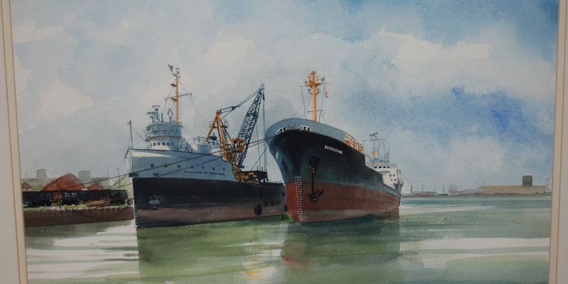 My dad loves ships from the Great Lakes. His father was a chief engineer on an ore boat back in the 1920s. My dad is 85 and when I asked him where he met Gil Reid he couldn’t remember. He had him paint the attached pictures back in the middle 70s. I think most of these were from the area around Jones Island in Milwaukee.