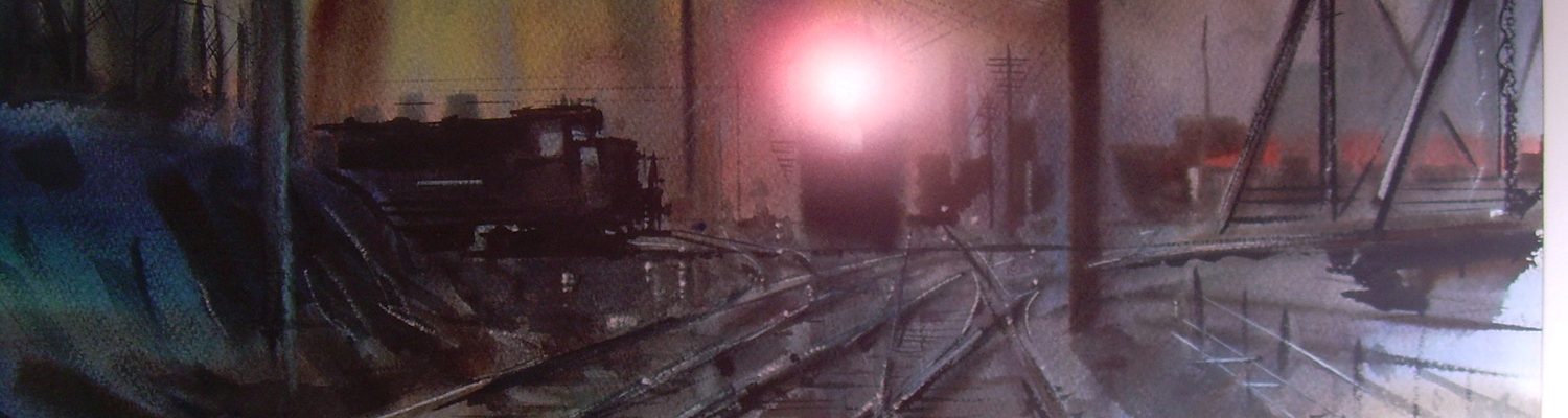 Recently sold for $400, this original watercolor has a title: “Wet Steel” on the back along with a note that says “Brookfield”. I don’t think the scene depicted here is Brookfield, WI (Gil’s hometown)