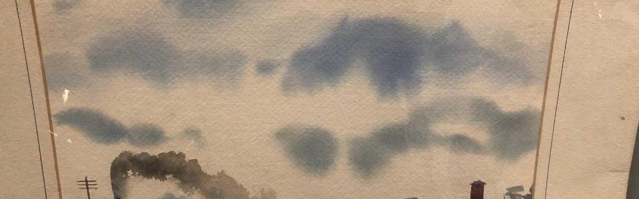 She shared the story: ” He and his cousin used to jump on the train north or south of town [Defiance, Iowa] and ride it in to town, getting off at his uncles’s lumber yard building. This is so reminiscent of that area. I wonder if he did on the spot commissions; its simplest city might suggest that.”