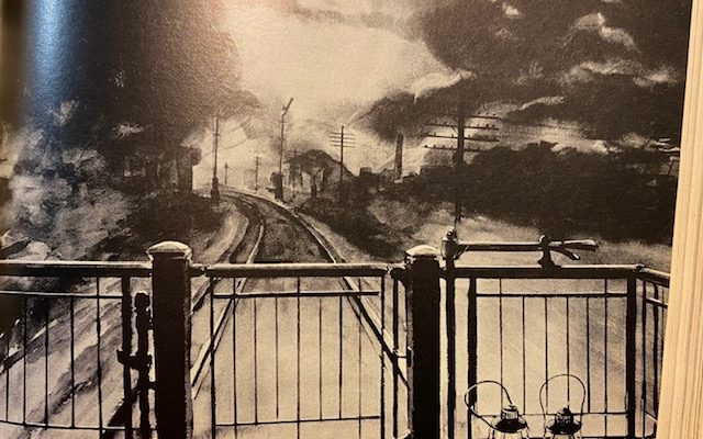 There were 10 of them published in the June 1964 issue of Trains magazine, in a story called “The Wonderful Trains of Thomas Wolfe.” In it, Trains ran extension quotations from Wolfe’s famous novels, with Gil’s paintings as illustration. Some of the paintings were really stupendous. All of Gil’s works ran in black-and-white.